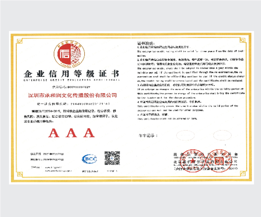 國(guó)家高新技術(shù)企業(yè)證書(shū) AAA信用等級(jí)企業(yè)