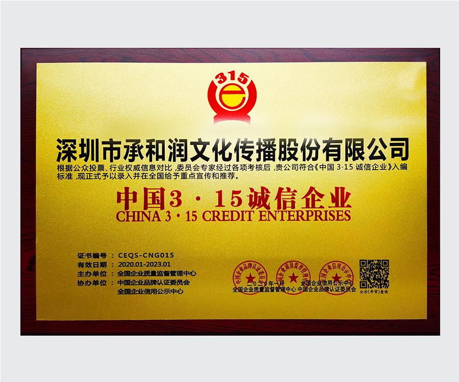 中國(guó)3.15誠(chéng)信企業(yè)稱號(hào)